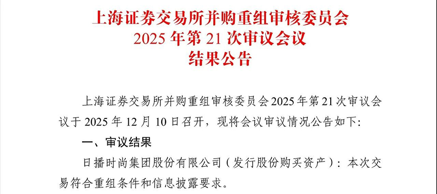 2025年12月10日,上海证券交易所发布并购重组审核委员会2025年第21次审议会议结果公告,日播时尚集团股份有限公司(603196.SH)发行股份及支付现金购买资产交易获审核通过,本次交易涉及收购四川茵地乐材料科技集团有限公司(以下简称“茵地乐”)71%股权。